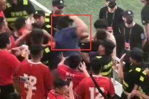 据现场球迷拍摄的视频显示,看台上发生了球迷冲突。其中一名蓝衣服的挥拳打完对方,随后转身走了。